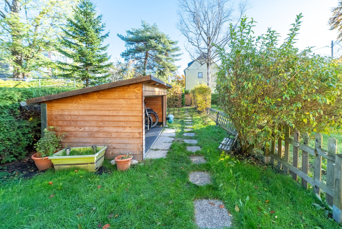 Zusätzlich stehen Ihnen zwei Gartenhütten zur Verfügung: Eine eignet sich ideal zur Aufbewahrung von Gartengeräten oder Fahrrädern, die zweite bietet weiteren praktischen Stauraum für Hobby, Freizeit oder vieles mehr.