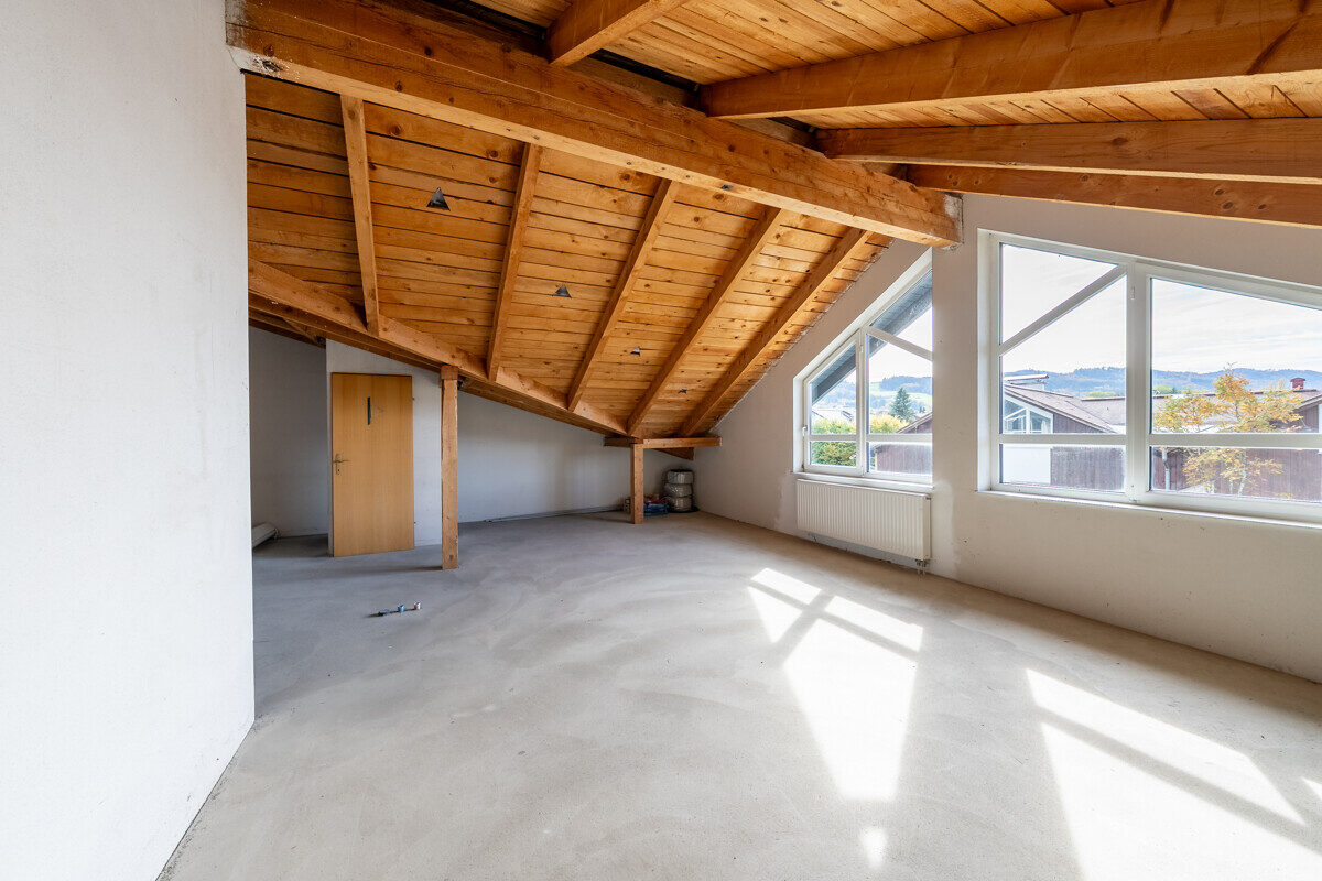 Ein besonderes Highlight stellt das derzeit noch nicht ausgebaute Dachgeschoss dar. Mit über 215 m² Wohnnutzfläche und großzügiger Raumhöhe eröffnet es vielfältige Möglichkeiten zur Erweiterung des Wohnraums und zur Realisierung einer vollwertigen Maisonette in der Zukunft.