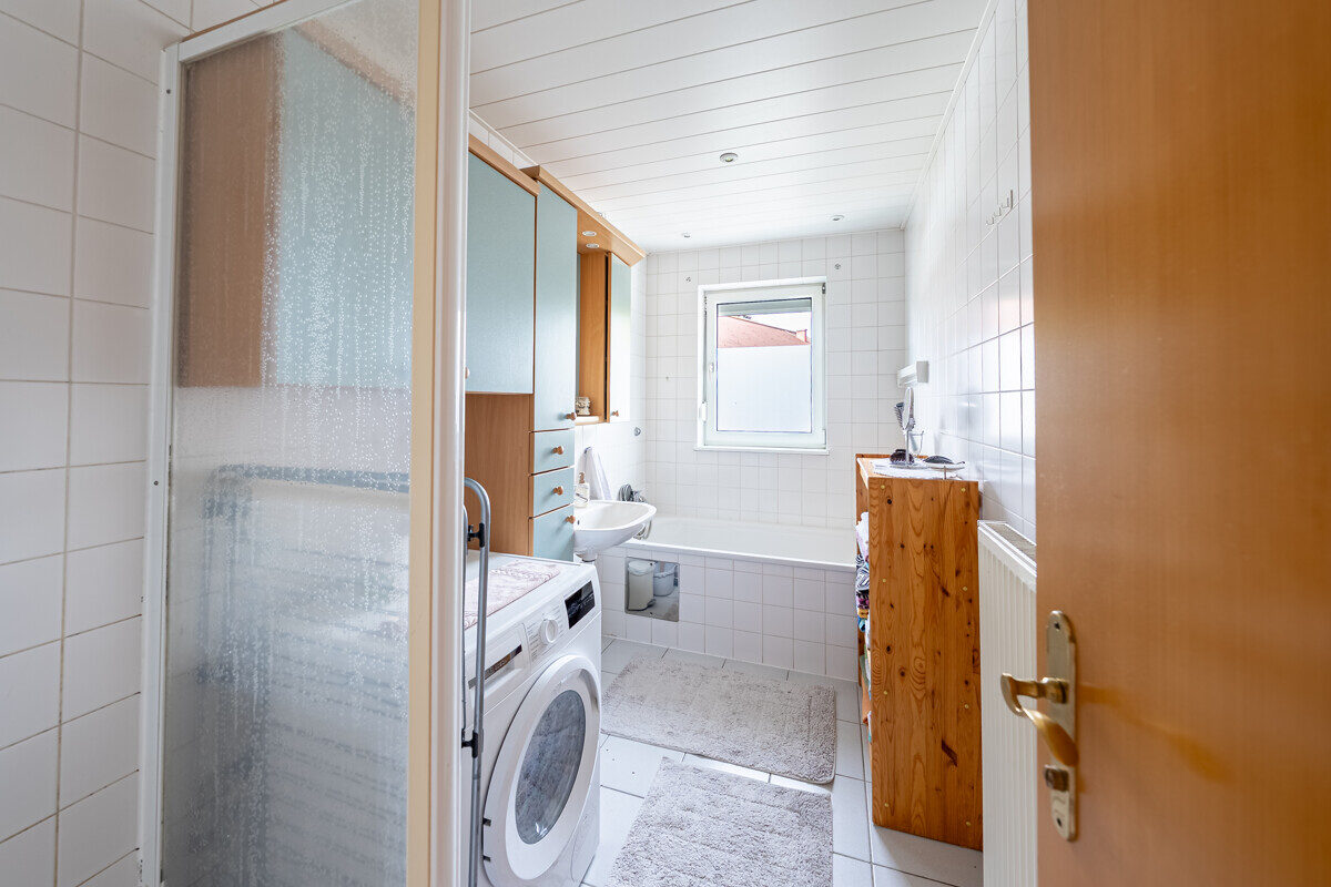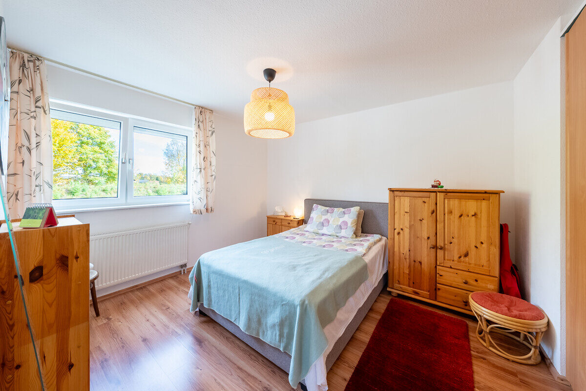 Ergänzt wird diese Ebene durch zwei Schlafzimmer, ein großzügiges Badezimmer mit Fenster, ein separates WC sowie zwei Abstellräume. Die Raumaufteilung ist funktional und durchdacht und eignet sich ideal für den täglichen Wohnbedarf.