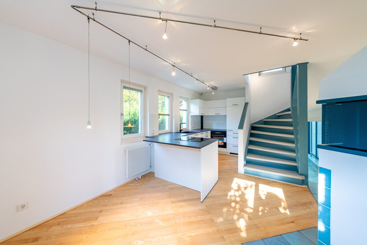 Im Erdgeschoss bildet der offene Wohn- und Essbereich mit moderner Küche, hochwertigen Geräten und Kamin das Herzstück dieser Etage.