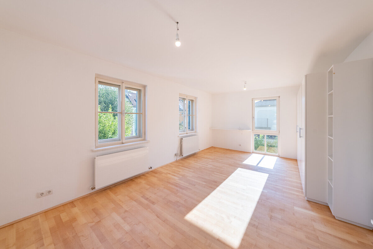 Das Dachgeschoss bietet ein weiteres Schlafzimmer – ideal für Gäste, als Büro oder privater Rückzugsort.
