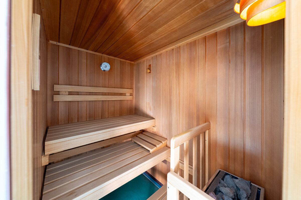 Im Obergeschoss erwarten Sie ein über 20 m² großer Schlafraum, ein Kinderzimmer sowie ein stilvolles Bad mit Sauna.