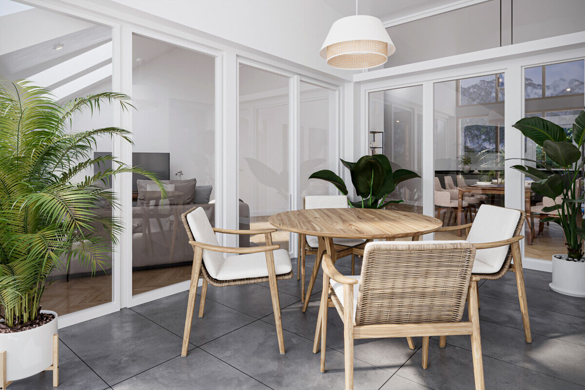 Wohnen mit Panoramablick: Naturnähe wird hier großgeschrieben – dank großer Fensterfronten genießen Sie nicht nur helle Räume, sondern auch einen herrlichen Ausblick auf die umliegende Natur und den imposanten Untersberg. Besonders hervorzuheben sind die großzügigen Terrassen mit bis zu 33 m² sowie die Wintergärten mit einer beeindruckenden Raumhöhe von bis zu 3,35 Metern und bodentiefen Fenstern.