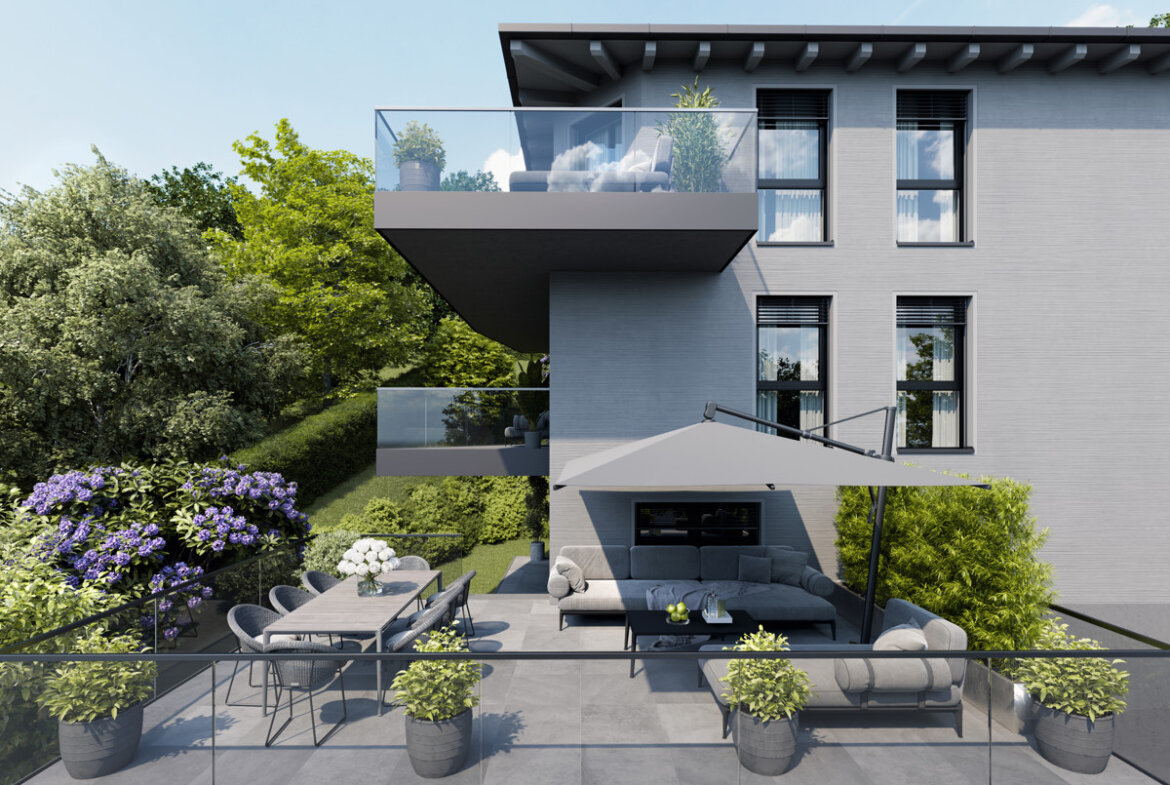 Jede der drei Einheiten glänzt durch einzigartige Merkmale – sei es durch die beeindruckende Raumhöhe, den weiten Ausblick, den privaten Garten oder die stilvolle Innenausstattung. Großzügiger Lichteinfall und eine durchdachte Raumaufteilung sorgen für ein unverwechselbares Wohngefühl und eine außergewöhnliche Atmosphäre, die höchste Ansprüche erfüllt.