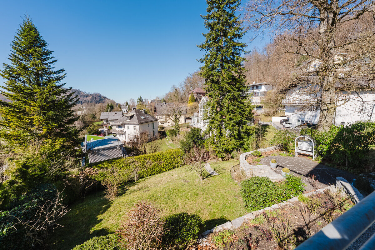 Das absolute Highlight ist der großzügige gepflegte Garten mit über 500 m², der mit romantischen englischen Rosenpflanzen, Weitblick und Größe zum Entspannen, Spielen und Genießen einlädt.