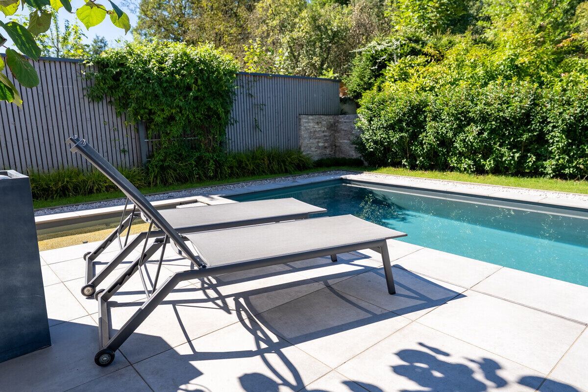 Ein eigener Pool für heiße Sommertage. Ein Fitnessraum (optional Gästezimmer) und eine Infrarot-Kabine für Gesundheit und Wohlbefinden. Eine große Doppelgarage mit Sektionaltor für Komfort und Sicherheit.
