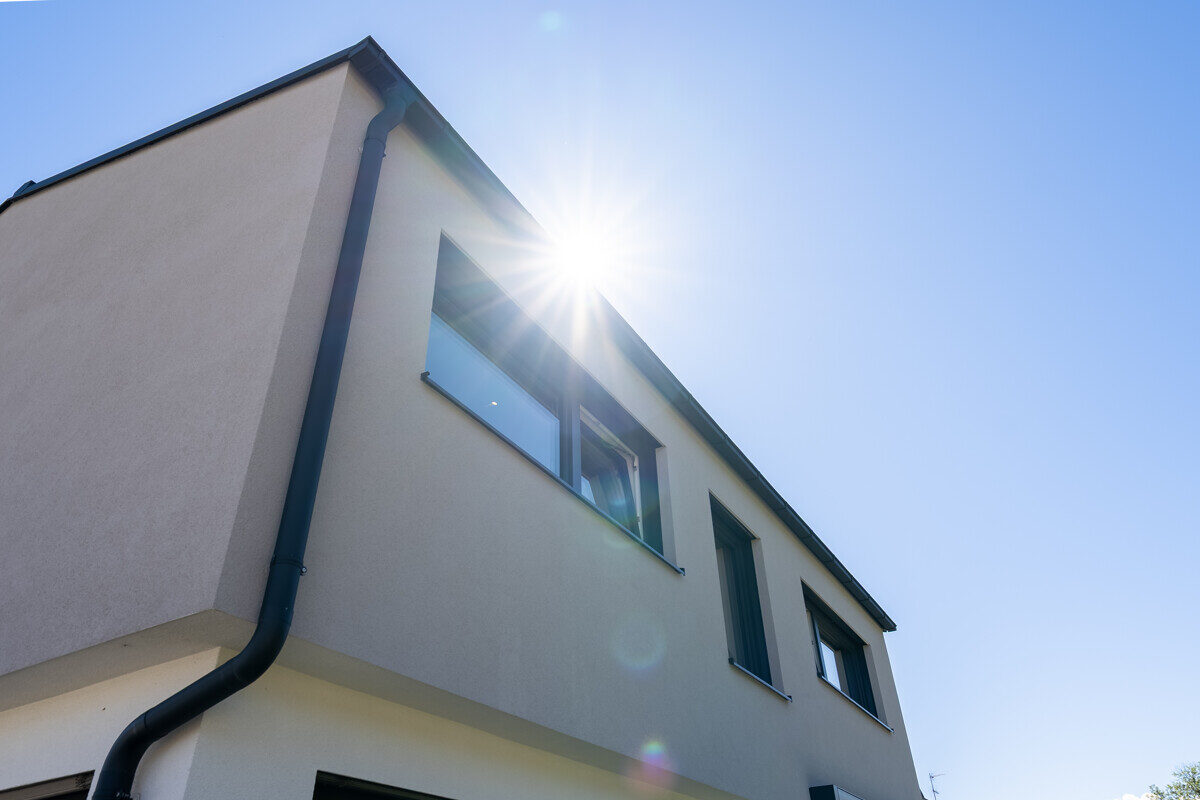 Große Gaulhofer-Fenster mit Audiostop 3-fach-Dichtungssystem, eine Luft-Wärmepumpe von Vaillant, Fußbodenheizung im gesamten Haus, Dachdämmung mit Mineralwolle und eine Photovoltaikanlage mit 5 kWp – all das macht dein Zuhause energieeffizient, nachhaltig und zukunftssicher.